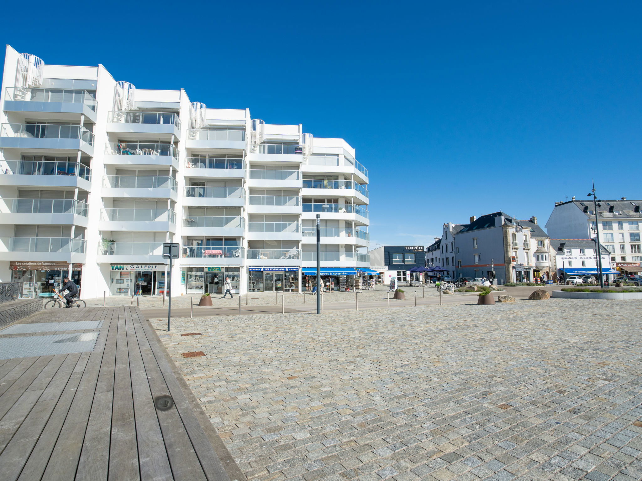 Quiberon: Résidence "Port Maria", de 5 étages. Dans le quartier de Port Maria, à 20 m de la mer, à 100 m de la plage. Infrastructures de la résidence: ascenseur. Magasins 20 m, magasin d'alimentation 50 m, supermarché 1.7 km, restaurant 20 m, arrêt de bus 50 m, plage de sable "Grande Plage" 100 m, centre thermal "Thalassothérapie de Quiberon" 2.3 km. Terrain de golf (9 trous) 2.3 km, ecole de surf 10 km, ecole de voile 3 km, tennis 2 km. Attractions à proximité: Casino de Quiberon, Belle ile en Mer, Houat et Hoedic, Côte Sauvage de Quiberon, Carnac, Les Alignements 18 km, Auray 25 km, Vannes 60 km. Veuillez noter: indiqué pour séniors. La remise des clés a lieu à l’agence de Quiberon, 1 km.